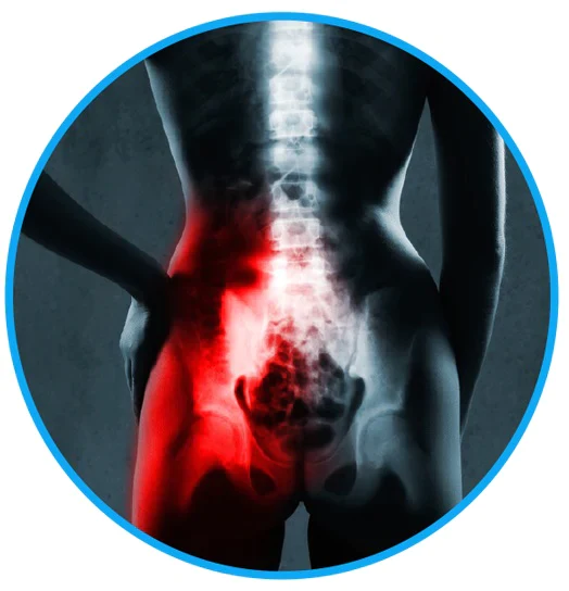 Alívio da ciática, dor lombar, dor nas articulações SI e dor no quadril.
